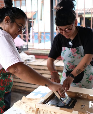 A mix of cute doodles, paint and coffee was put together in a Party 🎉 where we shared the fun of screenprinting and DIY with the people of Metepec.